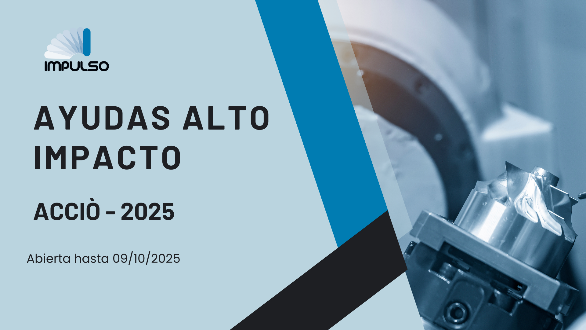 Desde IMPULSO nos complace recordarles que sigue abierta la Convocatoria 2025 de las SUBVENCIONES para inversiones empresariales de Alto Impacto de la Agencia para la Competitividad de la Empresa -Acciò- en su convocatoria 2025.