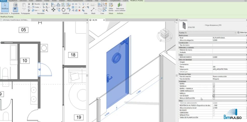 Desarrollo de la biblioteca de familias BIM para el catálogo de puertas cortafuegos utilizando el programa Revit, el software BIM más extendido en la industria de la construcción.