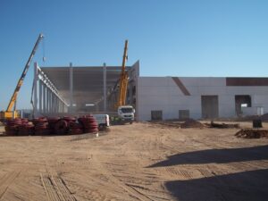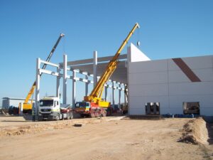 En el edificio de Nave industrial albergará la zona de producción, así como también se situarán en su interior los almacenamientos de materias primas y productos terminados. Tanto la zona de producción como la de almacenamiento contarán con puentes grúa.