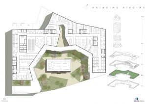 Desde el inicio del trabajo, la idea de redescubrir los valores existentes, a través de la rehabilitación del patrimonio, ha sido considerada para ser valorada en el proyecto. Con el objetivo de no ensombrecer el edificio del Palacio de Hierro, se considera en su entorno, una altura que no supera su altura. De esta manera, la escala del espacio público que predomina en los alrededores es la escala definida por el Palacio, con un total de tres pisos en los alrededores. La superficie construida restante se concentra en una torre ubicada en un punto singular más distante del Palacio; un punto con el que se establece un equilibrio con los edificios circundante